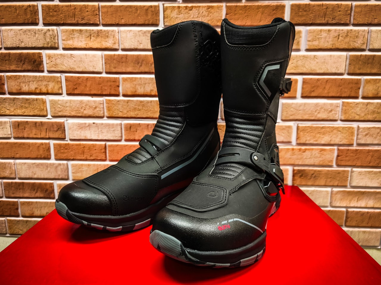 La membrana E‑Dry è impermeabile e traspirante, pensata per uso all‑season. Nei test su lunga distanza, il pacchetto regge bene eventuali acquazzoni: piedi asciutti e microclima interno controllato, specie con calze tecniche. Il passo non è compromesso dalla tecnologia a disposizione, la camminata a terra è naturale: con il Tonale affronti rampe di ghiaia o piastrelle bagnate senza pattinare, ma ti muovi alla reception dell’hotel o su marciapiedi lisci con la stessa disinvoltura e la sensazione di indossare una scarpa moderna.Un cenno alle regolazioni: il Tonale, con doppia fibbia micrometrica + velcro, permette un fitting ‘a zone’ (collo, tibia, polpaccio) utile se alterni off‑road e asfalto anche durante lo stesso giro. Avendo il collo del piede pronunciato ho dovuto giocare un pò con fibbie e Velcro finché non ho raggiunto una buona posizione della tomaia che non infastidisse in compressione a caviglia flessa. È l’unico punto dove un settaggio impreciso può dare fastidio a moto ferma; in marcia, con un appoggio attivo durante la guida, il problema non si manifesta.