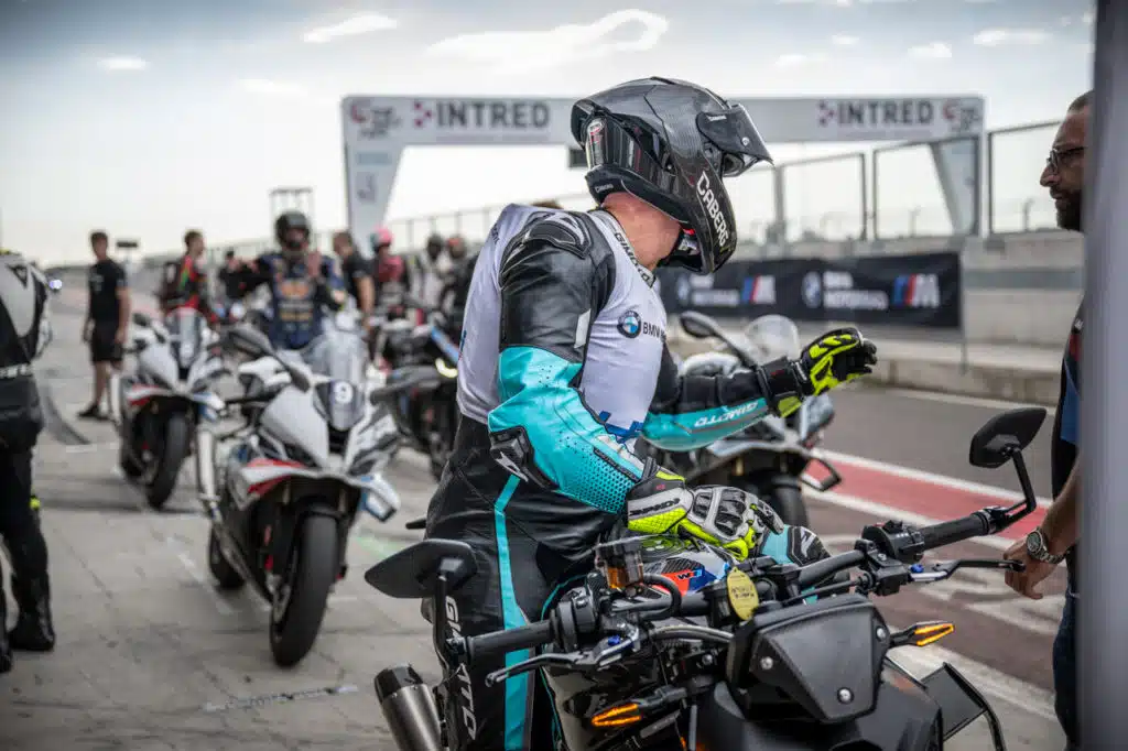 Imola, Cremona e Vallelunga le piste; Bmw M1000RR, S1000RR, M1000R e Triumph Speed Triple 1200RS le moto che hanno fatto da banco prova al nostro Caberg GP01, sfruttato come si deve nei mesi più caldi dell’anno per più di 8 ore al giorno. Con il team Pistard, ho partecipato come apripista a tutti gli eventi BMW Track Experience e Triumph Triple Experience del 2025, stressando notevolmente i prodotti in test. Con piacere, posso dire che il Caberg GP01 è uscito non a testa alta, bensì altissima dalle tappe in cui è stato protagonista. Sono molto sensibile alla calzata dei caschi, motivo per il quale al primo giorno con il GP01, ho portato con me il mio casco “solito” nel caso in cui il Caberg mi avesse procurato fastidi in qualche zona del capo. A Imola lo indosso per la prima volta, rimanendo già piacevolmente sorpreso dalla calzata che – in taglia M per una circonferenza di 58 cm – è praticamente perfetta. I tessuti sono lisci e freschi a contatto con la pelle del viso e la pressione sulla parte alta della fronte e sulle guance si fa sentire come è giusto che sia per un casco racing, ma senza mai dare fastidio. La visiera si alza e si abbassa con facilità, bloccandosi in posizione di chiusura con una minima pressione verso il basso. Imola è una pista molto tecnica, con passaggi tra luci ed ombre e, in più, la giornata calda, umida e nuvolosa, non aiuta. Sto in pista dalle 9 alle 18 con un’ora e mezza di pausa e qualche momento di respiro tra un turno e l’altro: il GP01 si impregna di sudore ma l’aria che entra nei condotti di ventilazione aperti nella parte superiore della calotta e nella mentoniera, garantiscono un ricircolo costante espellendo l’aria calda dalla parte posteriore. Quando si procede a bassa velocità è possibile tenere la visiera in posizione semi-chiusa, aumentando ancora di più l’afflusso di aria. Con una lieve pressione verso il basso, la si blocca agevolmente eliminando ogni tipo di fruscio aerodinamico. Guidando per diversi turni la Hypernaked M1000R con ben 208 cv che la spingono in avanti come un missile lasciando la testa completamente in balia dell’aria, il GP01 si dimostra davvero stabile, confermando l’eccellente lavoro svolto in galleria del vento. Il Cremona Circuit è stato il secondo circuito sul quale il GP01 mi ha accompagnato: alla guida di una M1000RR ho fatto più di 3 ore filate senza trovare un difetto. Il comfort – anche a quasi 300 all’ora – è sempre notevole; quando si impostano le curve con il busto fuori dalla moto, il Caberg mi assiste permettendomi di tenere fermo lo sguardo, qualsiasi sia la direzione in cui io lo ponga a contrasto con i flussi d’aria. Anche la visuale è ottima, forse solo lievemente limitata rispetto ad altri concorrenti: è un discorso di pochi gradi che si percepisce solamente passando da un casco ad un altro in rapida successione. L’ultima tappa è stata a Vallelunga, l’autodromo del Lazio per antonomasia: una pista tecnica con il Curvone che mette a dura prova moto, pilota e casco per via dell’aria che investe il rider nel momento in cui si scollina. Anche qui, il GP01 mi ha regalato tanta stabilità e sicurezza pur trovandomi “appeso” al manubrio della Triumph Speed Triple 1200RS senza la minima protezione aerodinamica. In nessuna delle tre esperienze in circuito ho avuto bisogno di sostituire il casco con quello che usavo in precedenza. E’ stato amore al primo contatto grazie ad un fit perfetto e a performance che ho ritrovato solo in caschi che costano il doppio del Caberg GP01. FIM approved ma non solo… per noi è promosso a pieni voti!