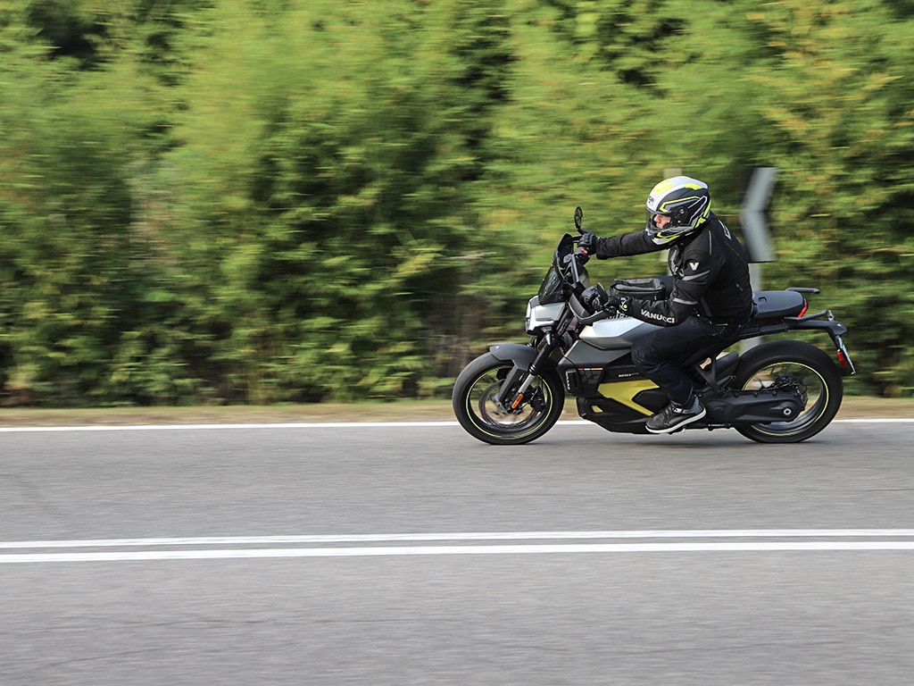 Per darvi qualche dato tecnico, siamo di fronte a una moto con 47 CV di potenza (35 kW), ma con ben 72 Nm a qualsiasi regime (un valore da moto di almeno 800 cc disponibile SEMPRE). I sorpassi in salita sono un gioco da ragazzi e le riprese da qualsiasi velocità risultano essere super agevoli ed appaganti. Se volessimo riassumere ancora il concetto, diremmo che questa moto, nonostante la propulsione elettrica, ha davvero carattere.