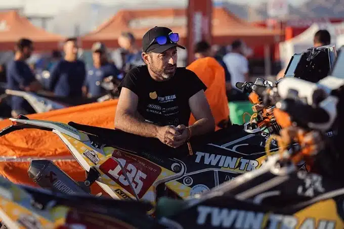Se l’erano promesso tanti anni fa, lui e suo padre Fabrizio, che un giorno avrebbe corso questa gara insieme. Nonostante il destino ha negato tale possibilità, Gioele Meoni non ha abbandonato la promessa. Dopo aver aspettato il momento giusto, Meoni jr ha contattato alcuni sponsor che supportavano il padre, ha verniciato la sua KTM 450 Rally in arancione e grigio come la bicilindrica LC8 con cui Fabrizio vinse nel 2002 ed è partito.