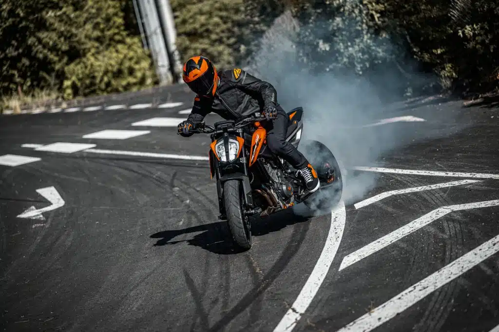 La KTM 790 Duke 2024 è dotata di sospensioni WP Apex in grado di trasmettere il massimo feeling di guida e il pieno controllo della moto. A proposito di controllo, la moto propone quattro mappe disponibili (Rain, Street, Sport e la opzionale Track) che consentono di regolare l’erogazione di potenza del motore e l’intervento del Traction Control sensibile all’angolo di piega in funzione delle esigenze del pilota e delle condizioni atmosferiche.