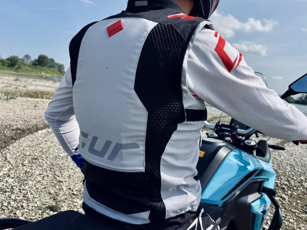 Tucano urbano è un marchio che vuol dire garanzia, i capi della sua gamma adventure hanno ribadito quanto sostenuto dalla casa di abbigliamento motociclistico negli anni. Abbiamo affrontato alcuni km di fuoristrada ad alte e basse velocità sentendoci a nostro agio e degnamente protetti. La giacca J-Three è comoda e ben fatta, le protezioni morbide non danno fastidio durante le manovre più tecniche, non ci si sente mai goffi ed impacciati. Il triplo strato in softshell è una ottima schermatura contro vento e schizzi d’acqua, asciuga rapidamente e traspira quanto serve per non affannare nei percorsi più tecnici. Il pantalone Niagara ci è piaciuto, non gli abbiamo trovato alcun difetto se non quello di avere delle prese d’aria forse troppo limitate. Risulta un capo da indossare nella stagione invernale o nelle umide giornate autunnali quindi è corretto che non sia super ventilato, non è necessario. Imbottitura e resistenza all’acqua top! I guanti G-Three ci hanno colpito per la loro fattura. Grazie alle protezioni sulle nocche, direttamente iniettate sul tessuto, il guanto risulta comodo ed esteticamente molto accattivante. La calzata è aderente, si riesce ad avere buona sensibilità sulle pulsantiere e sulle leve La digitazione sugli schermi touch invece, soprattutto per lo spessore del guanto, non è molto precisa. In sintesi, il completo ci ha convinti, indossandolo si percepisce l’esperienza di T.UR maturata nelle competizioni e trasferita sui prodotti destinati a tutti gli appassionati.