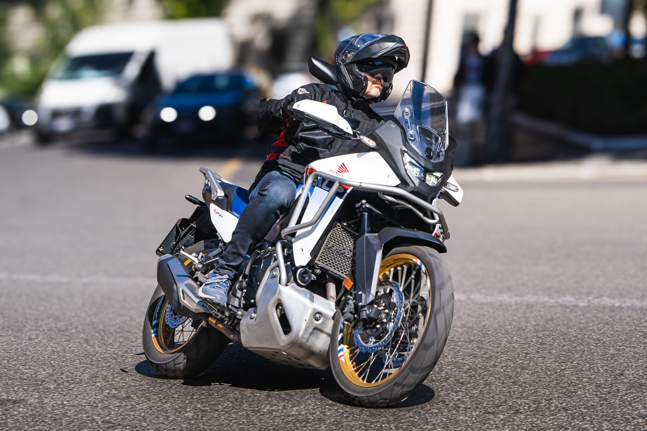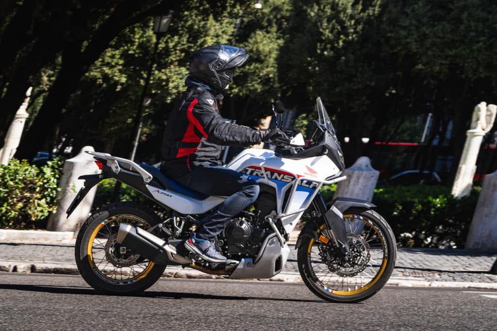 La nuova Honda XL 750 è la naturale evoluzione di un progetto sano e intelligente. Posizione in sella neutra, con 850 mm di altezza che, se da soli mostrano un valore sopra la media, in questa moto sono ben coadiuvati dagli svasi laterali che consentono anche a chi non ha le gambe lunghe, di toccare terra senza troppa difficoltà. Questa posizione in sella, insieme al baricentro favorevole facilita i movimenti già a bassa velocità, e in questi contesti il bicilindrico con manovellismo a 270° ha quel battito pastoso che si avvicina al sound di un V2, con il benefit che allo stesso regime restituisce meno vibrazioni sul manubrio. L’on/off del model year 2025, probabilmente complice l’omologazione Euro5 plus, è più educato rispetto alla precedente versione e offre una dolcissima e azzeccata risposta già ad impercettibili aperture di gas. In questa architettura motoristica è qualcosa che apprezziamo e che dona una risposta del motore molto lineare. Nel traffico l’impianto frenante anteriore (doppio disco da 310mm) mostra buona progressione più che potenza bruta al richiamo della leva, ma il bilanciamento dei pesi consente di apprezzare molto l’utilizzo del posteriore, che partecipa con disinvoltura a costruire una frenata globalmente molto efficace. Nell’utilizzo urbano è una moto snella che si lascia condurre con naturalezza in ogni condizone, e il confort offerto dalle sospensioni completamente riviste per questa nuova versione è la ciliegina sulla torta dell’intero pacchetto. Il motore non scalda troppo nonostante i limiti dettati dalle norme anti inquinamento, e l’ ampia apertura di sterzo praticamente non le da limiti nelle manovre da poter costruire (e inventare) nel traffico delle grandi città. E’ così pratica, questa Honda XL 750 Transalp, che letteralmente è in grado di alleggerire la guida nelle città congestionate dal caos, consentendo al motociclista in sella di divertirsi anche se c’é un marciapiede tra…il traffico e la libertà.