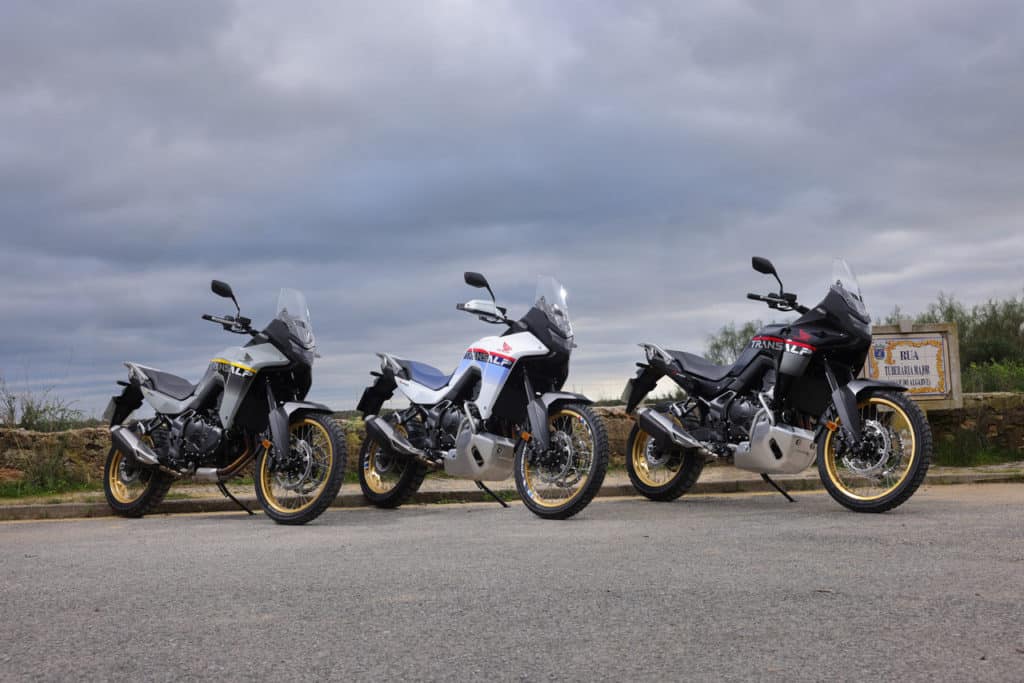La nuova Honda XL 750 Transalp 2025 si riconosce subito per il nuovo frontale con doppio proiettore LED, e per un parabrezza riprogettato in materiale Durabio (bioplastica ad alta trasparenza) che beneficia di una aerodinamica che migliora il passaggio del flusso d’aria, riducendo le turbolenze sulle spalle del pilota e mantenendo più stabile la testa a velocità autostradali. Queste novità ben si mescolano alle grafiche che creano un filo diretto con i ricordi (non solo per la mia generazione) che rimandano alle prime versioni degli anni ’80. Il bicilindrico parallelo Unicam da 755 cm³ con albero a 270° resta invariato, efficace già dai medi regimi, con i suoi 92cv (67,5 kW) a 9.500 giri e 75 Nm a 7.250 giri. Il pacchetto elettronico conferma i riding mode multipli con gestione di potenza, freno motore e controllo di trazione/ABS su più livelli, mentre l’omologazione passa a Euro 5+. La mappatura dell’acceleratore ride-by-wire è stata perfezionata dai tecnici Honda, con particolare attenzione alle risposte del gas ai regimi più utilizzati durante la guida in urbano. Sul fronte praticità, Honda amplia i pacchetti di accessori ufficiali (Urban, Touring, Adventure, ecc.) con borse morbide impermeabili, parabrezza più alto e migliorato che può contare sul beneficio dei deflettori aria laterali, sella comfort (+20 mm), fendinebbia e allarme.