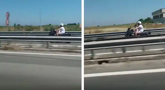 Sullo scooter a 120 km/h con un bambino piccolo tra le gambe e senza casco [VIDEO]