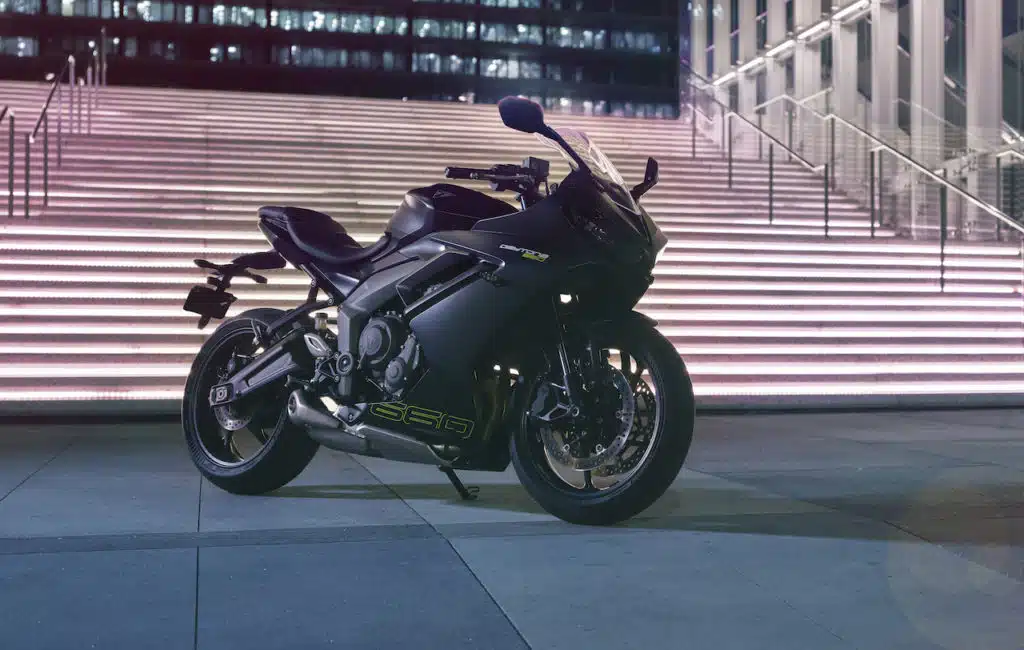 La Triumph Daytona 2024 è spinta da un’evoluzione del motore tre cilindri del marchio inglese da 660cc, ora in grado di erogare una potenza di 95 CV ed una coppia massima di 69 Nm.