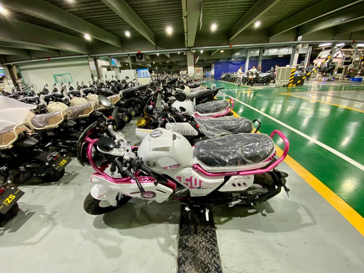 La visita aziendale inizia con una delle catene di montaggio per motociclette, dove si apprezzano una pulizia ed un ordine davvero elevati e anche una forte presenza di tecnologia, con la classica catena che porta i veicoli nelle varie stazioni che viene sostituita da dei carrelli automatizzati che si muovono tra le varie postazioni di montaggio. Anche l’approvvigionamento delle parti avviene in modo automatico sempre con carrelli a guida autonoma. A fine linea ci sono poi tutti i vari controlli qualità sia estetici che tecnici e la preparazione dei veicoli per la consegna finale. Abbiamo visto i depositi delle moto in consegna e possiamo garantirvi che i brand che si appoggiano a Zonsen per la costruzione dei propri veicoli sono davvero tanti. Successivamente la visita è proseguita nella fabbrica per la produzione di motori, da dove ogni anno escono 3 milioni di unità. Qui l’automazione è molto elevata e gli operatori eseguono principalmente ruoli di controllo nelle varie fasi di montaggio dei propulsori.